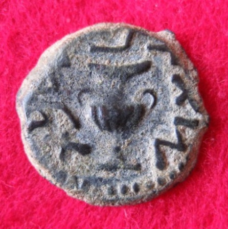 So, zum Schluß meiner kleinen Reise durch die Münzlandschaft Judaeas noch eine Münze aus dem ersten jüdischen Aufstand der 66 n. begann und 70 n. mit der Zerstörung Jerusalems und des Tempels endete; das heißt, nicht ganz, denn in Massada, einem Palastareal Herodes' auf einem Tafelberg am Toten Meer, hatten sich knapp 1000 Menschen verschanzt, die von der 10. Legion und weiteren Hilfskräften belagert wurden. Erst Ende 72 gelang es den Römern, über eine aufgeschüttete Rampe die Festung einzunehmen. Als die Lage für die Belagerten aussichtslos wurde, haben sie sich am Vorabend der erwarteten Erstürmung gegenseitig getötet um nicht lebend in die Hände der Römer zu fallen. Nur 5 Personen haben überlebt. (Die Geschichte des jüdischen Krieges ist erzählt worden von dem General der Aufständischen Josephus Flavius, den die Römer gefangengenommen hatten und der dem römischen Feldherrn Vespasian prophezeite, Kaiser zu werden. Der wurde es dann tatsächlich und beauftragte seinen Sohn Titus, den Feldzug gegen die Aufständischen fortzuführen) (Titusbogen in Rom zeigt den Triumph über die Aufständischen). Josephus kam nach Rom und trat in die Dienste der Flavier. Im Verlauf des Aufstandes wurde auch die klosterähnliche Siedlung Qumran zerstört. Die Bewohner hatten aber ihre wichtigsten Dinge - religiöse Schriften - in den umliegenden Höhlen versteckt, die erst ab 1947 durch Zufall gefunden wurden. Es sind dabei unter anderem die ältesten Handschtriften alttestamentlicher Texte. In Jerusalem gibt es ein eigenes Museum für diese hochbedeutenden Handschiften. Einen zweiten Aufstand, der auch numismatisch seinen Niederschlag fand, gab es in den Jahren 132-135 (Bar Kochba Aufstand). Auch er wurde durch die Römer niedergeschlagen. Vielleicht hat jemand ein Stück aus dieser Zeit und kann es noch anfügen.