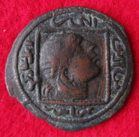 Av. Gekrönte weibliche Büste frontal, in den erhobenen Händen die Mondsichel haltend, die sich über ihrem Kopf zum Kreis schließt. Rv. Im Feld fünfzeilige Legende mit Nennung des Lehnsherrn, des Ayyubiden al-'Adil Abu Bakr (592-615AH); Randschrift: Geprägt in Jazirah sanat sitt was suttuma'en (606 AH ?).