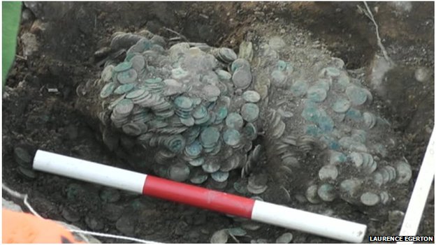Roman coins The coins are remarkably well preserved for those found in Devon where acidic soils can corrode metalA hoard of 22,000 Roman coins has been unearthed near Seaton in east Devon. The Seaton Down Hoard is believed to be one of the largest and best preserved 4th Century collections to have been found in Britain. They were discovered last year by builder Laurence Egerton, 51, using a metal detector. The Royal Albert Memorial Museum in Exeter is launching an appeal to buy the coins so they can be put on display in the city.