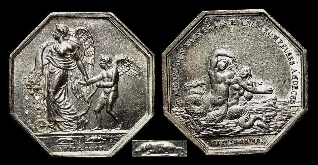 "l'eusses-tu cru" - "hättest du's geglaubt?" Das Revers des Jetons zeigt, daß der Meister über mangelnden Zulauf nicht zu klagen hatte.
