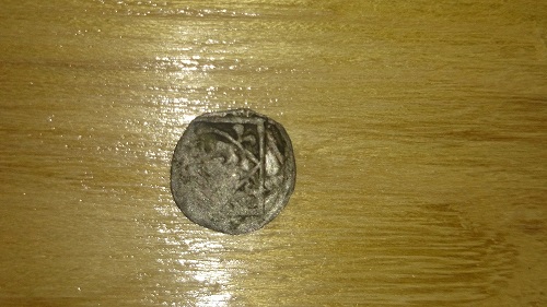 Etwas gedreht erkennt man einen Heller aus Salzburg unter