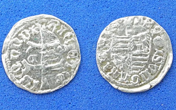 Ich halte dieses Stück für eine sehr schlampige Fälschung eines ungarischen Denares von Sigismund von Luxemburg (1387-1437); Huszar 576. Die Umschrift müsste heißen: VS: + MOn SIG-ISMVnDI, RS: REGIS VnGARIE ETC. Es gibt bei dieser Münze zahlreiche Beizeichen - wie auch hier "C"?