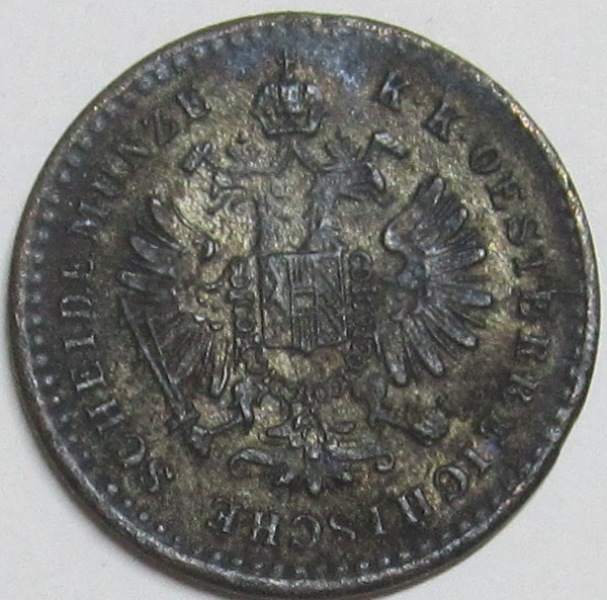 Es handelt sich, wie unschwer zu erkennen, um einen 5/10 Kreuzer 1859 A aus der Regierungszeit Kaiser Franz Josef I. (mäßige Erhaltung, Wert gleich Null, und trotzdem wird er aus besagtem Grund in meiner Sammlung verbleiben).