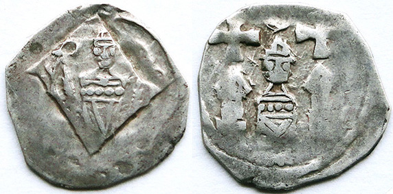 darf ich der Bestimmung dieses Friesachers ein vorsichtiges "a" anfügen? Die beiden Figuren habe genau die Kleidung (Punkte) wie der im CNA angeführte Hälbling Ch11a. Allerdings ist fraglich, ob es sich wirklich um einen Hälbling oder um eine Stempelvariante handelt. Wie schaut es denn mit dem Gewicht der Münze aus?