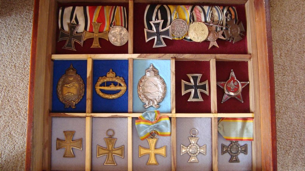 gefällt mir eigentlich gut. habe mir das Produkt mal angeschaut. da muß ich wohl bei meinem nächsten Besuch in der alten Heimat mal zum Händler meines Vertrauens traben. Für meine Ordensammlung habe ich zur Selbsthilfe gegriffen. In drei wunderbare Holzkistchen (da waren Präsentationsweine aus RSA drin) habe ich drei Einsatzfächer gebaut und für jeden Orden individuell die Form mit Filz ausgelegt hergestellt. Ist eine Heidenarbeit, mit der Laubsäge ausgesägt und dann die Form mit Filz ausgelegt und eingepresst. Aber jetzt habe ich es so wie ich will. Den Wein habe ich nach Fertigstellung vertilgt.