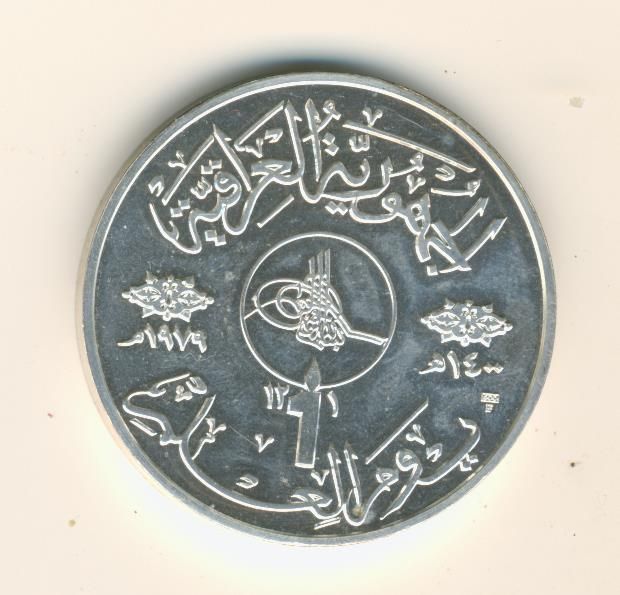Ich glaube nicht, daß das eine Münze ist; wird wohl eine Medaille sein. Sie zeigt die Tughra eines türkischen Sultans und die Jahreszahl 1979.