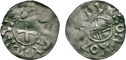 Der Moneta Radasponensis von Hahn (über Bayrische Münzprägung (und Salzburg) vom 9. - 11. Jhdt.) hat nichts ergeben, da alle Denare mit Kreuzen im Zentrum diverse Beizeichen in den Kreuzwinkel aufweisen.