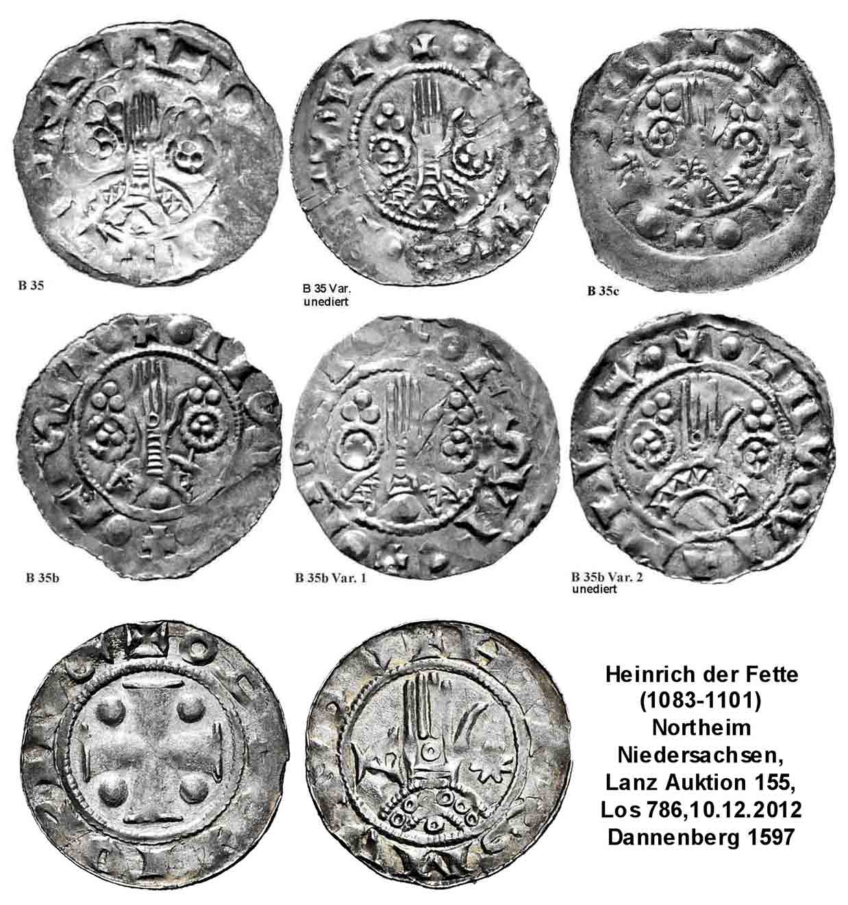 Diese Silbermünze wird Heinrich dem Fetten (1083-1101) aus Northeim, Niedersachsen zugeordnet.