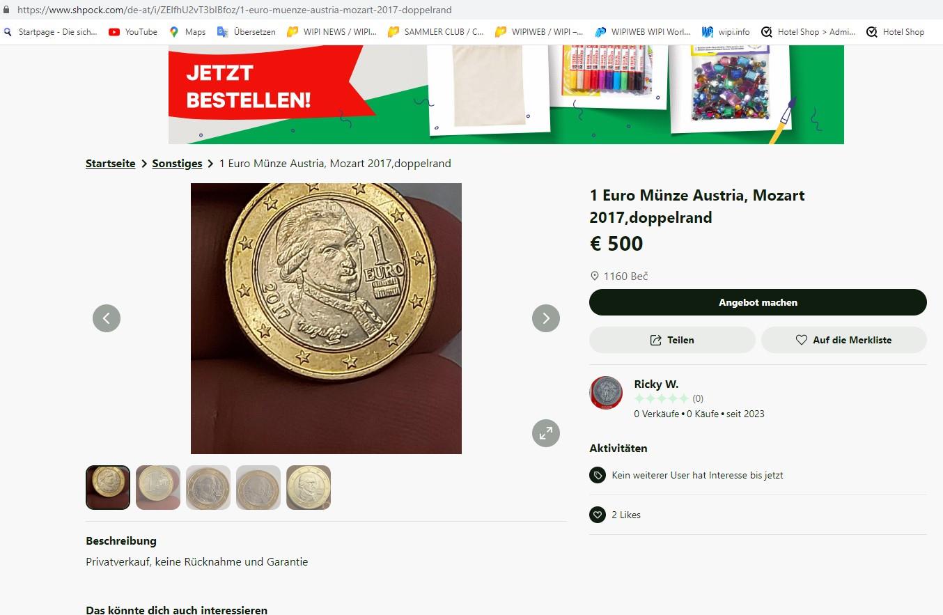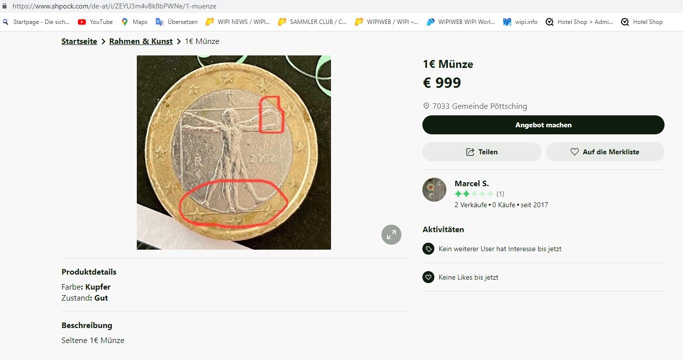 Überall wie Shpock, Willhaben, ebay etc werden Euromünzen mit Fehlprägung angeboten !