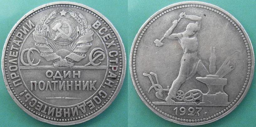Hier sind 50 Kopeken bzw. 1 Poltinnik in Silber von 1927.