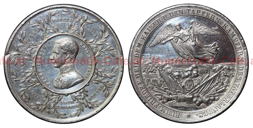 Auf die Enthüllung des Kaise..., Auf die Kämpfe 1848-1853, Auf die Vollendung der II. F..., Auf die Wohltätigkeitslotterie, Elisabeth (Sisi), Elisabeth Kappenabzeichen, Elisabeth Schleudergussmedaille, Kaiserin Elisabeth/Honved Re..., Medaille Erzherzog Karl, Plakette Avers, Weltausstellung Wien 1873
