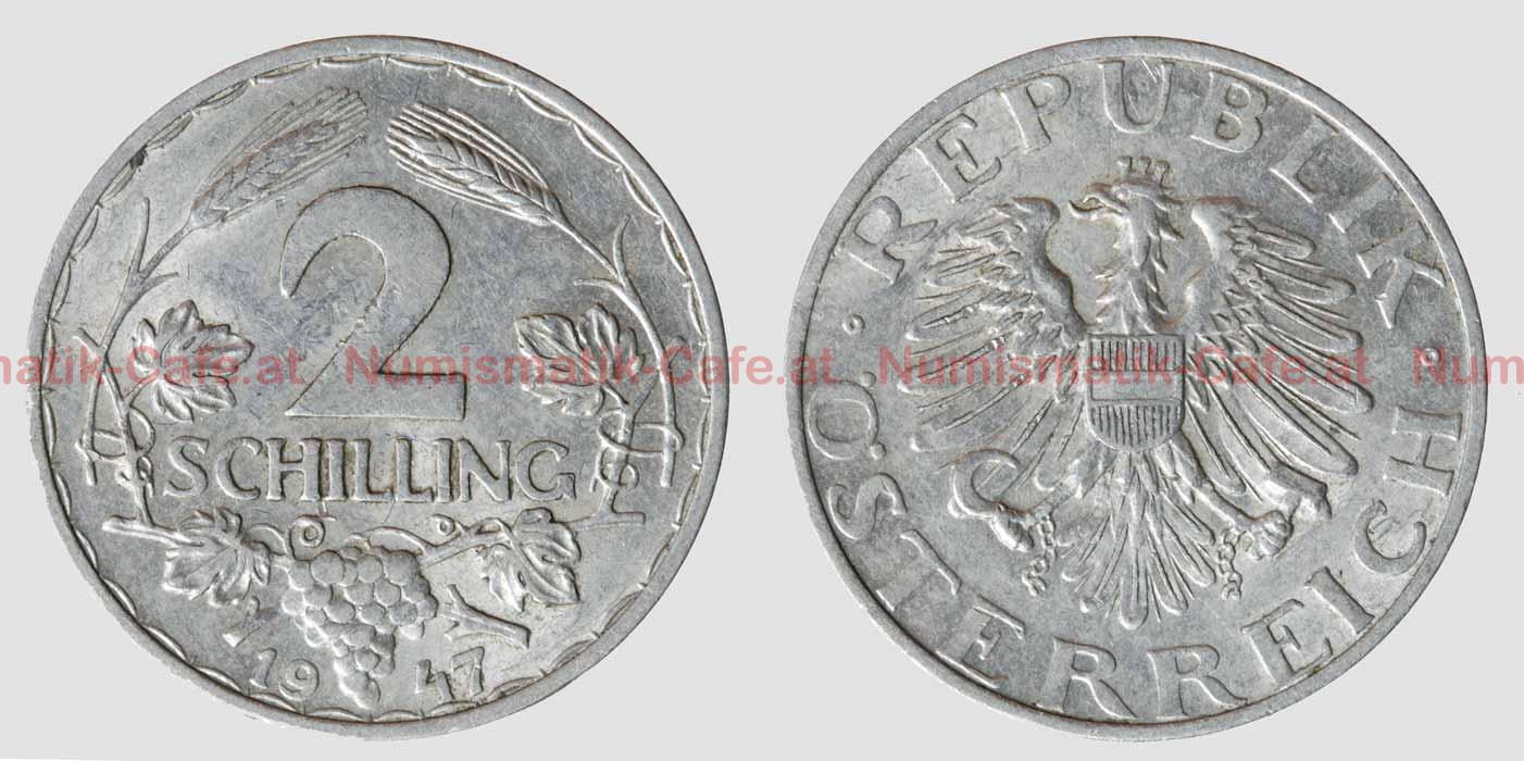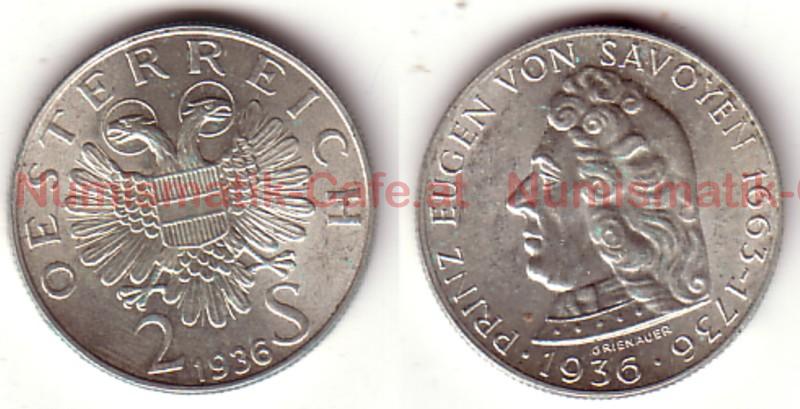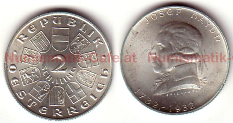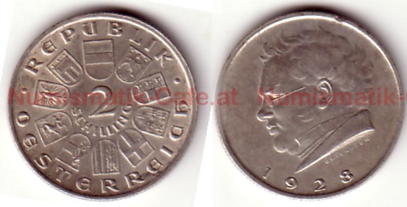 2 Schilling 1931 Mozart, 2 Schilling 1946, 2 Schilling 1947, 2 Schilling 1947, Dr. Karl Lueger, Engelbert Dollfuss 1934, Franz Schubert 1928, Ignaz Seipel 1933, J. B. Fischer von Erlach 1937, Joseph Haydn 1932, Prinz Eugen von Savoyen 1936, Theodor Billroth 1929, Walther von der Vogelweide ...