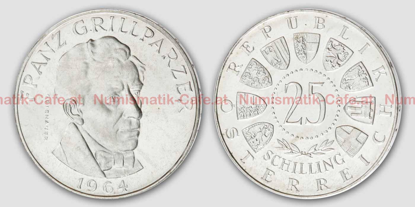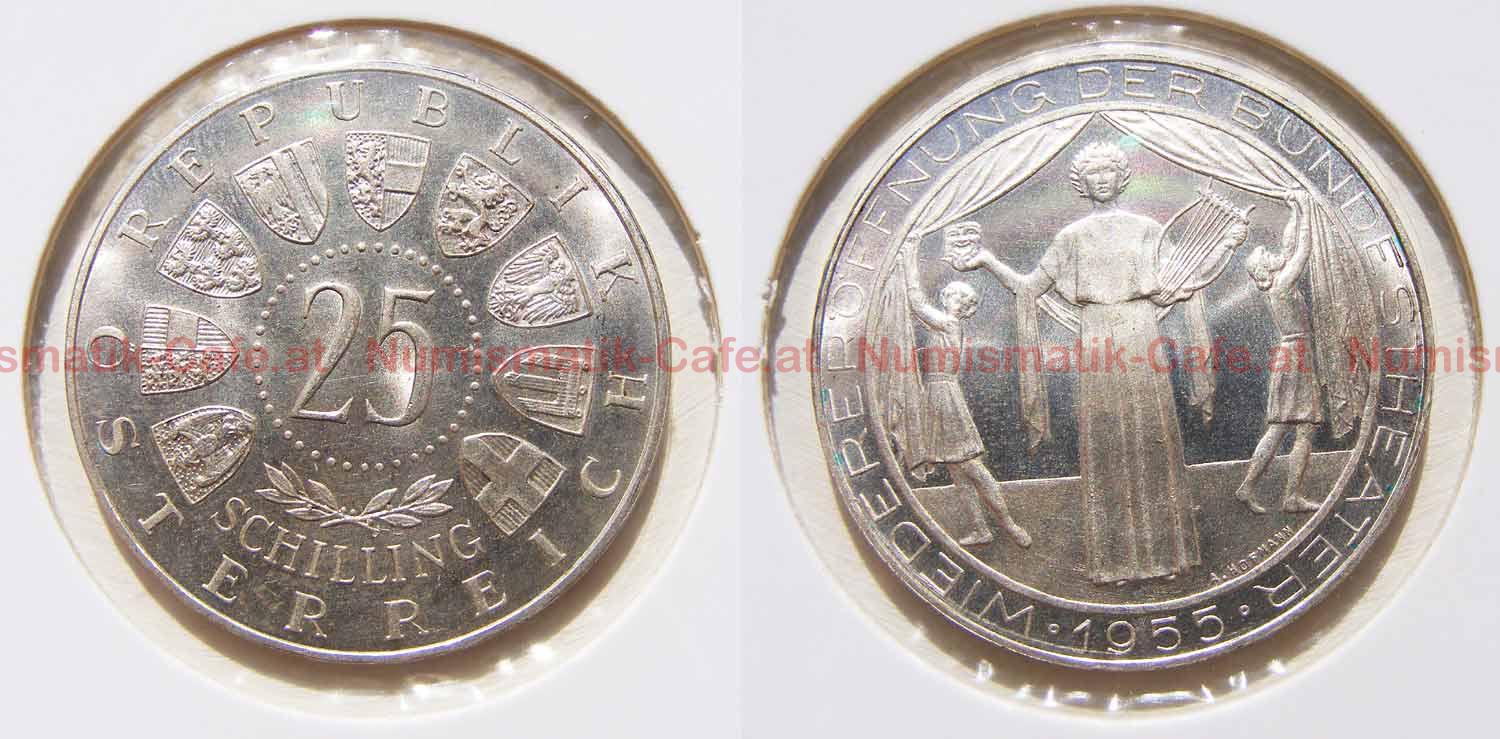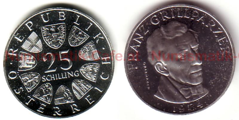 150 Jahre TH Wien (Johann Jo..., 25 Schilling 1955 "Bundesthe..., 25 Schilling 1956 Mozart in PP, 25 Schilling 1959 - Erzherzo..., 25 Schilling 1961 PP, 25 Schilling 1963 PP, 25 Schilling 1969 PP, Franz Grillparzer (1964), S#100 1968 Peter Rosegger, S#101 1970 Lehar, S#104 1971 Boerse, S#107 1972 Ziehrer, S#110 1973 Reinhardt, S#73 1955 Bundestheater, S#74 1956 Mozart, S#75 1957 Mariazell, S#80 1958 Auer v. Welsbach, S#82 1959 Erzherzog Johann, S#83 1960 Kärntner Volksabst..., S#84 1961 Burgenland, S#85 1962 Bruckner, S#86 1963 Prinz Eugen, S#89 1964 Grillparzer, S#91 1965 Prechtl, S#93 1966 Ferdinand Raimund, S#94 1967 Maria Theresia, S#97 1968 Hildebrandt