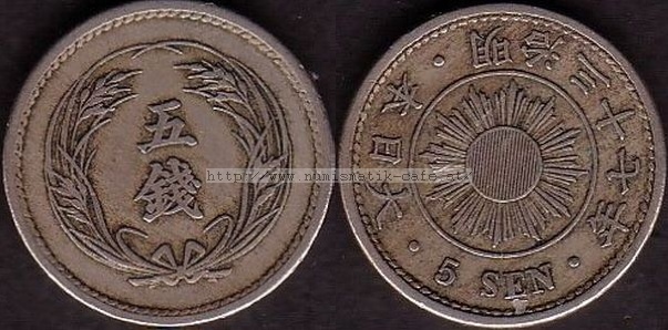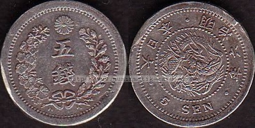 5Sen 1870 Typ1, 5Sen 1871 Typ2, 5Sen1871Typ3, 5Sen1873Typ1, 5Sen1875, 5Sen1876Typ2, 5Sen1877Typ1, 5Sen1889, 5Sen1890, 5Sen1891, 5Sen1892, 5Sen1893, 5Sen1894, 5Sen1895, 5Sen1896, 5Sen1897TypChrysantheme, 5Sen1897TypReisähren, 5Sen1898, 5Sen1899, 5Sen1900, 5Sen1901, 5Sen1902, 5Sen1903, 5Sen1904, 5Sen1905