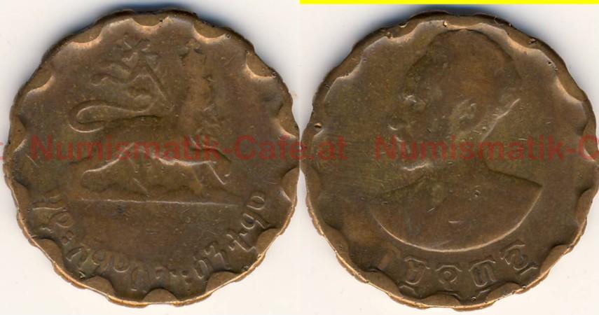 | Bildbeschreibung: | Kaiserreich Äthiopien Haile Selassie EE 1923 - 1967 (AD 1930 - 1974) 2. Regierungszeit EE 1934 - 1967 (AD 1941 - 1974) Äthiopische Währung EE 1937 - 1967 (AD 1944 - 1967) 25 Santeem EE 1936 (AD 1943) KM#36 crude edge variation erwähnt unter S#31 Münzstätte lokal Cu-Sn (Cu 95, Sn und Zn 5) 6,50 g (andere: 6,50 - 6,82) 25,6 !!! mm, gewellter Rand mit 14 geriffelten Wellenbergen mit je 3 groben Rillen pro Block, die ursprüngliche Riffelung ist jedoch an manchen Stellen noch zu sehen, weswegen der Eindruck feiner Zwischenrillen entsteht. Die Entwürfe für diese Serie stammen von dem US-Amerikaner Gilroy Roberts, der auch die Kopfseite des Kennedy-Halfdollars gestaltete. Die Münzen aus Philadelphia enthalten einen gewissen Zinnanteil, der für die leicht rötlich schimmernde Tönung, die Bronzefarbe, entscheidend ist. Erst 1952 und 1953 trafen dreißig Millionen der neuen 25er mit dem Wellenrand aus Philadelphia ein. Der Wellenrand jener Münzen wurde mit einem "Münzkragen" während der Prägung erzeugt. "Wellen und Täler" sind immer an der selben Stelle des Münzbildes. Auf der Kopfseite liegt das mittlere Zahlzeichen, die 100, exakt in der Mitte des Tales. Das ist bei den nachträglich gewellten zwar theoretisch auch möglich, bislang aber noch nicht bekannt geworden. Zudem sind die Wellen bei den neuen Münzen absolut gleichmäßig in der Form, in der Größe und der Verteilung, bei den nachträglich gewellten treten auch hierbei erheblich Unregelmäßigkeiten auf. Auch die Randkerben unterscheiden sich deutlich. Auf dem folgenden Bild von villa66 (Vielen Dank!) sieht man den Unterschied hervorragend: rechts ist die Münze, die zusammen mit ihrem Rand in Philadelphia geprägt wurde. Nach dem Einzug der runden 25er im Jahr 1952 wurden diese in der Münzstätte oder in lokalen Betrieben - auf Grund der Variantenvielfalt vermutlich beides - zu Stücken mit Wellenrand umgearbeitet. Was mit den übrigen 9.578.500 Stücken geschah ist nicht ganz klar. Einerseits sind die lokal umgearbeiteten Stücke recht häufig anzutreffen, so dass man meinen könnte, auch der Rest sei in Äthiopien umgearbeitet worden. Andererseits tauchen sie höchst selten in guten Erhaltungen auf, so dass man wohl eher vermuten muss, dass sie in die USA zwecks Umprägung zu einem Stück wie der oben gezeigten Münze zurückgeschickt wurden. Dann allerdings sind die lokal hergestellten Ausgaben wesentlich seltener, als man - nach ihrer Verfügbarkeit am Markt - vermuten würde. Eine geplante Systematisierung dieser nachgerändelten Münzen ist bislang an der Vielfalt gescheitert, weswegen hier lediglich einige Varianten vorgestellt werden. Bei diesem Stück ist zu beachten, dass es - vermutlich durch den Druck bei der nachträglichen Rändelung - nicht mehr ganz plan ist! Dadurch ist anscheinend keine ovale Verformung, wie sie bei allen anderen Stücken zu beobachten ist, eingetreten. |