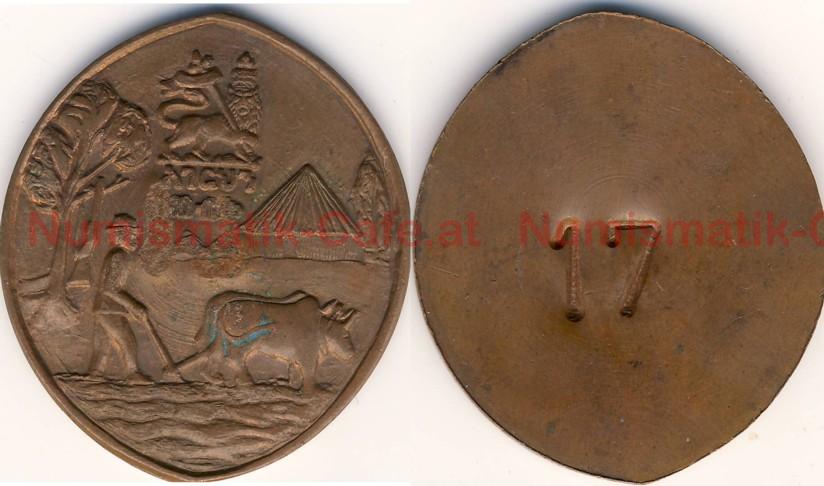 | Bildbeschreibung: | Kaiserreich Äthiopien Haile Selassie EE 1923 - 1967 (AD 1930 - 1974) 2. Regierungszeit EE 1934 - 1967 (AD 1941 - 1974) Äthiopische Währung EE 1937 - 1967 (AD 1944 - 1967) moderne Phantasie einer Marke Kupfer 21,15 g China? Italien? 44,8 x 39,2 mm, glatter Rand, ovaler Schrötling Gill #- Diese Phantasiemarke ist ähnlich #HSc66, hat aber eine eingestanzte Nummer "17" auf der Rückseite. Der Text unter dem Löwen, der fälschlicherweise nach rechts geht, lautet evtl.: Lagarehene Tabeqe (?) "Erklärungen": "Die Revolutionssoldaten (Gewehr am Baum) werden getestet, ob sie auch wieder zum Bauern taugen, durch ein Wettpflügen. Unser Bauer hat Furche 17." Ischbierra "Aber woher kann der äthiopische Bauer und ehemalige Revolutionssoldat unsere "17" lesen und warum trägt er einen typisch italienischen oder gar norddeutschen Hut? Ich halte das eher für eine angebliche(!) "Werkzeugmarke", die vor Ausleihung des Ochsenpaares und des Pfluges als Pfand beim äthiopischen König hinterlegt werden musste. Und zwar von einem italienischen Soldatenbauern." Hanjogo "(Aber warum trägt er einen typisch italienischen oder gar norddeutschen Hut? Hanjogo) Stammt aus einer Kleiderspende." Ischbierra |