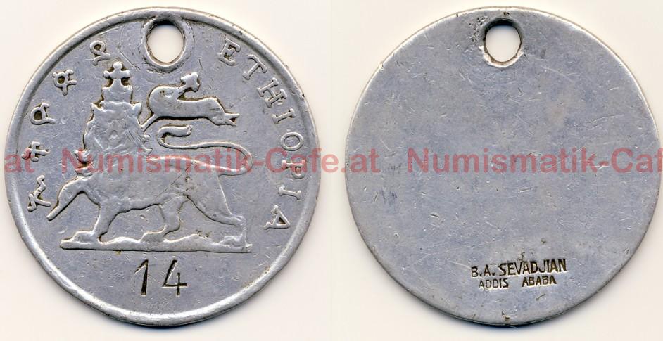 | Bildbeschreibung: | Diese Marke wurde mir als "Banktoken" angeboten. Über die Hintergründe bin ich noch im Unklaren. Es könnte natürlich auch etwas ganz anderes (Garderobenmarke, Marke für Gepäckaufbewahrung ...) sein. Literaturbekannt ist das relativ große Stück meines Wissens nicht, aber allemal interessant. Zunächst einmal die physikalischen Daten: Aluminium / 8,90 Gramm / 47,8 - 48,2 mm Durchmesser. Der nach links schreitende Löwe deutet zunächst auf die Zeit Menelik II. hin, aber vermutlich ist die Marke deutlich jüngeren Datums. Darauf läßt die Punzierung "B.A. Sevadjian" schließen. Afrasi, dem ich für die Hilfe bei den Identifikationsversuchen herzlich danke, schreibt dazu folgendes: "Bedros Sevadjian war Hofjuwelier unter Haile Selassie, der Teile des Inventars der Palastmünzstätte Meneliks noch nach dem 2. Weltkrieg weiterbenutzte. Er wurde zu Beginn der Mengistu-Ära ermordet. Ich würde den Token gefühlsmäßig in die 50er oder 60er Jahre legen." |