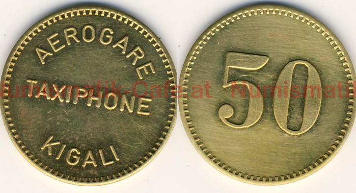 | Bildbeschreibung: | Telefonmünze Wert 50 FRW Groenendijk # - Messing 5,25 g / 26,0 mm AV: oben im Kreis AEROGARE, mittig waagerecht TAXIPHONE, unten im Kreis KIGALI RV: 50 |