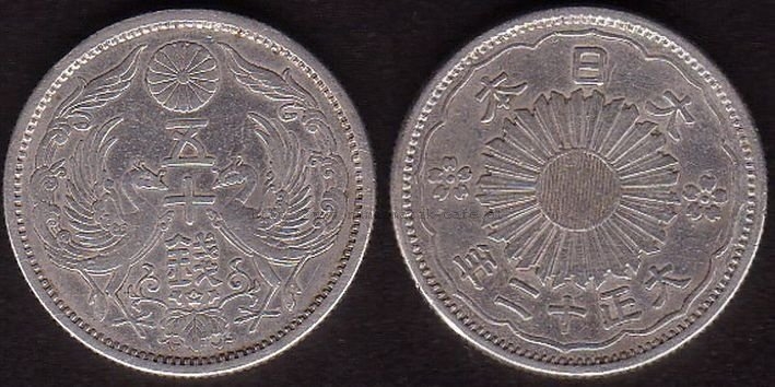 Bildbeschreibung: | 50 Sen 1923 Phönix Material: Silber 720 / Kupfer 280 Durchmesser: 23,50mm Gewicht: 4,95g Randschrift: Keine / Riffelrand Auflage: 185,180,000 Kat.-Nr.: Schön: 23 KM: 46 JNDA: 01-17 |