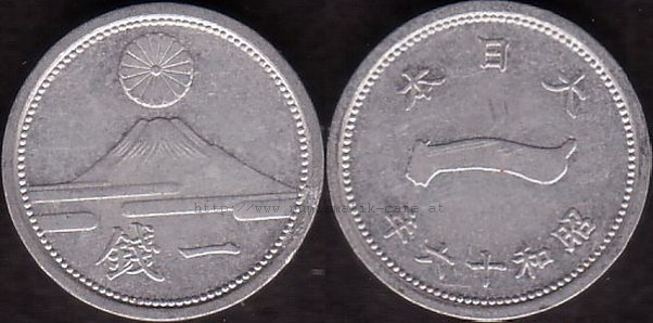 | Bildbeschreibung: | 1 Sen 1941 Mt Fuji Material: Aluminium 1000 Durchmesser: 16mm Gewicht: 0,65g Randschrift: keine Auflage: 1,016,620,734 Kat.-Nr.: Schön: 36 KM: 59 JNDA: 01-51 |