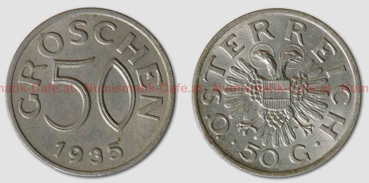 | Bildbeschreibung: | 50 Groschen, 1935 K-N, 24mm, 5,48g VS: Wertangabe, Jahreszahl (Design: Michael Povolny) RS: Wappen des Bundesstaates, Landesname (Design: Gudrun Baudisch) S#54 ANK#16 KM#2854 |