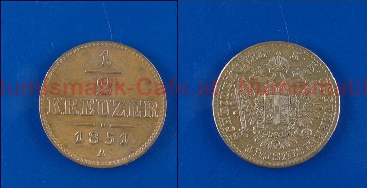 | Bildbeschreibung: | 1/2 Kreuzer 1851 A A = Wien ANK 2 Material Kupfer Bild von www.moneta.at |