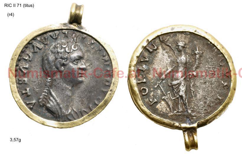 | Bildbeschreibung: | Denar/ROMA A) DIVA DOMITILLA AVGVSTA Drapierte Büste nach rechts mit Haarzopf R) FORTVNA AVGVST Fortuna steht nach links, hält Ruder und cornucopiae Gewicht:3,57g Referenz: RIC II[Titius]/71. C. 3 (Domitilla Sr.) Anmerkung : Münze gefaßt |
