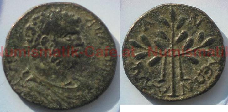 | Bildbeschreibung: | Alabanda, Karien AU K M A ANTWNINOS ALABANDEWN SNG Copenhagen 15, BMC 40 DM 2,6 9,2 gr. Zitat: Die Beschreibung des Revers aus Cop. 15 lautet: "Laurel-branch with three sprays, filleted" Danke an helcaraxe |