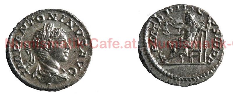 | Bildbeschreibung: | A) IMP ANTONINVS PIVS AVG Belorbeerte, drapiert, gepanzerte Büste nach rechts R) PM TRP III COS III PP Iupiter sitzt nach links, hält Zepter, in anderen Hand Victoriola,m links unten sitzt Adler Ø: 18mm Gewicht: 3,3g Referenz: RIC IV/II/27 gepr.: ROM; 220 A.D. |