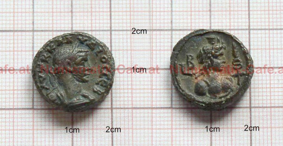 | Bildbeschreibung: | Tetradrachme // ALEXANDRIA A) AVTK KLAVDIOC CEB Belorbeerte Büste, gepanzert nach rechts R) L B Büste des Hermanubis mit modius nach rechts; rechts von ihm caduceus mit Ähre Gewicht:11,1g Ø:20mm Referenz:BMC 2327 gepr.269 |
