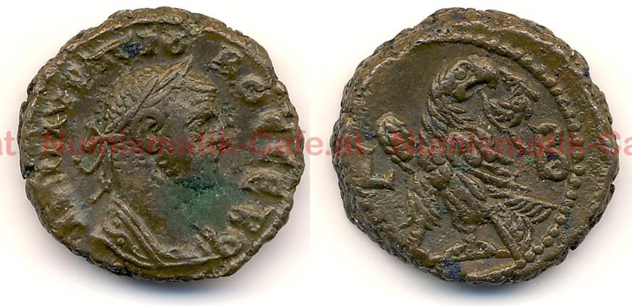 | Bildbeschreibung: | Billon-Tetradrachme/ALEXANDRIA A) A KM AVP ПPO BOC CEB Belorbeerte, gepanzerte Büste nach rechts R) LB Adler mit Kranz im Schnabel, links stehend, rechts blickend Gewicht: 8,25g Ø: 19,7 mm gepr.:276/277 Referenzen: Geissen 3126 / Dattari 5552 / BMC 2427 / Milne 4546 / Curtis 1849 / Savio 2184 / Förschner 1200 / Kampann/Ganschow 112.5 |