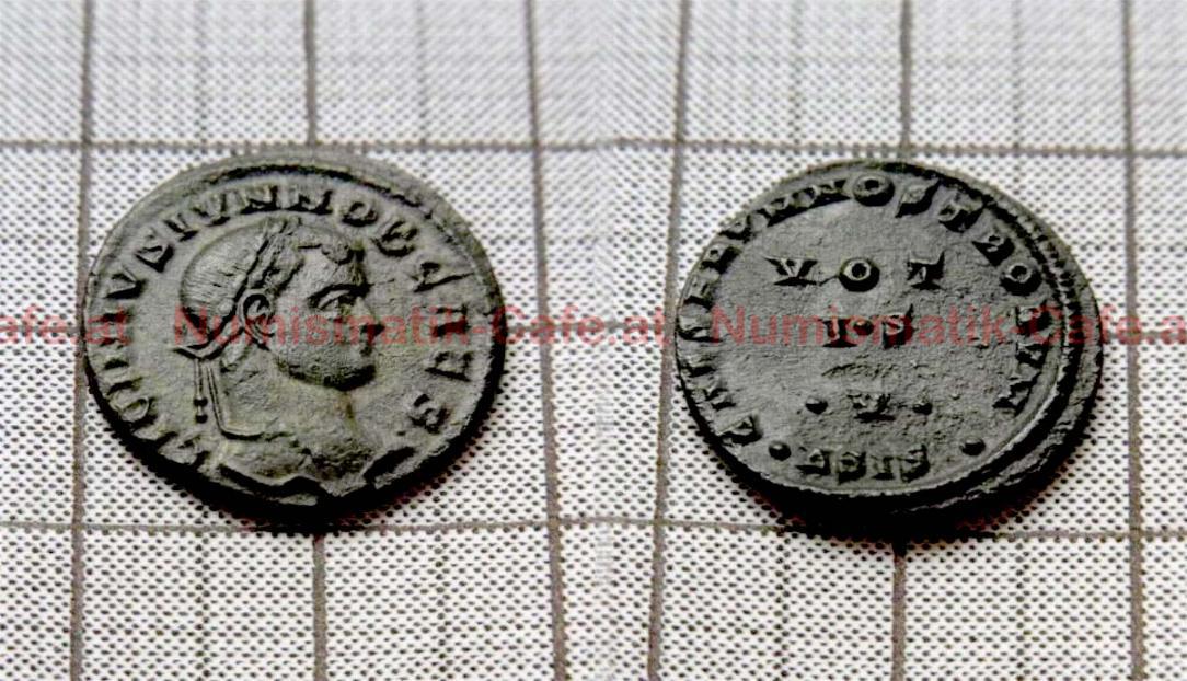 | Bildbeschreibung: | Follis/SISCIA A) LICINIVS IVN NOB C Belorbeerte Büste nach rechts R) In der Mitte steht: VOT I.S .V. , darum ohne Kranz: CAESARVM NOSTRORVM Abss.: .Δ SIS . Gewicht:2,67g Ø: 18mm Referenz:RIC VII/143 gepr.: 320 |