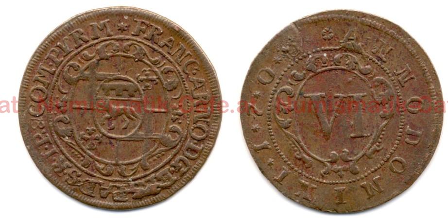 | Bildbeschreibung: | Kupfer 2.23 g / 23.8 mm Schwede #205A/a Weing.#653e Münzstätte: Münster Münzmeister: Johann Willerding Umschrift Av: FRANC ARNO… ohne Gegenstempelung unterschiedliche Interpunktion zu Weing.#653a |