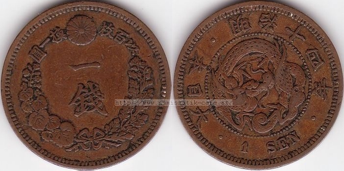 | Bildbeschreibung: | 1 Sen 1881 Typ 1 Material: Kupfer 980 /Zinn 10 / Zink 10 Durchmesser: 27,87mm Gewicht: 7,13g Randschrift: Keine / glatt Auflage: zusammen mit Typ 2 = 16,123,612 Kat.-Nr.: Schön: ? KM: ? JNDA: 01-46 normale Schreibweise der 4 in der Jahreszahl |