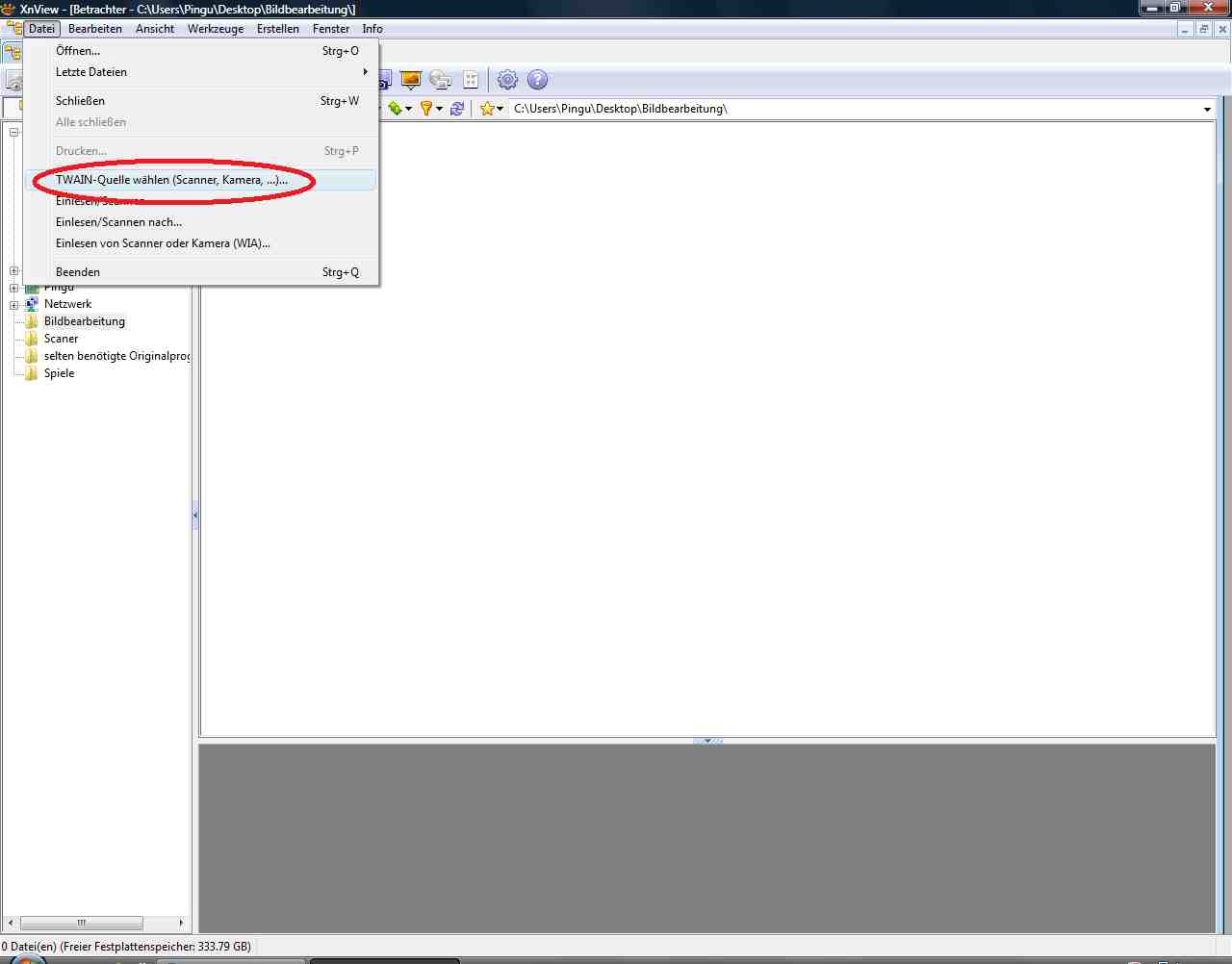 Dazu unter "Datei", "TWAIN-QUELLE wählen" euren installierten Scaner auswählen.