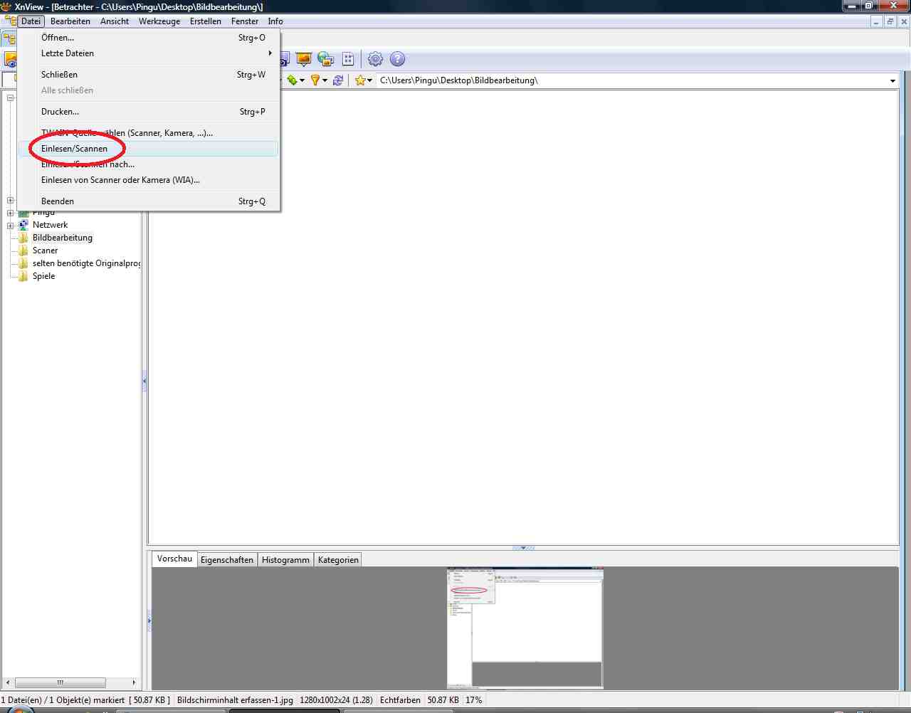 öffnen des Programmes "xnviev" und Wechsel in den Pfad "Bildbearbeitung".