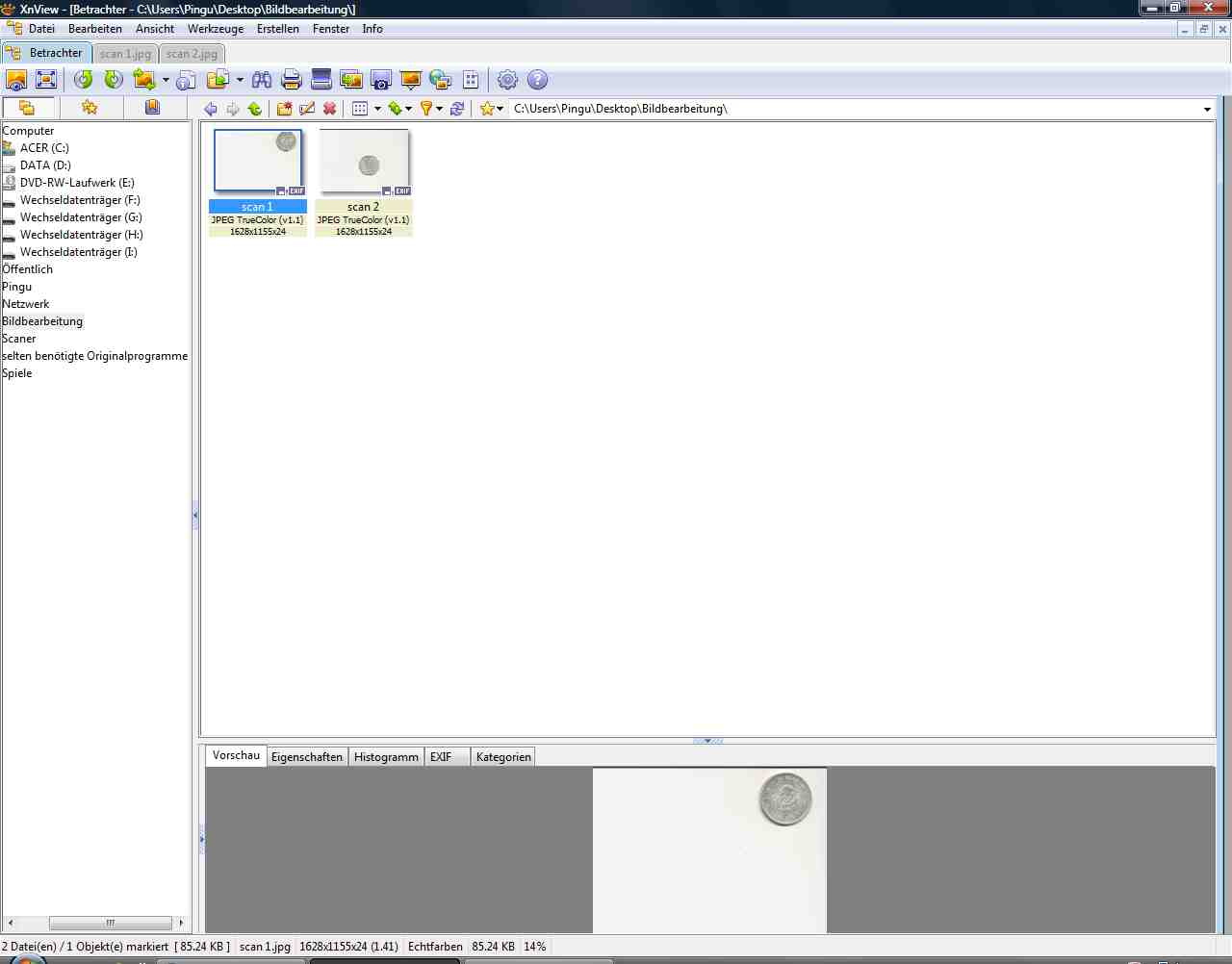 Beim Ausgangsbild digitale Fotografie sollten jetzt hier bereits die Ausgangsbilder zu sehen sein, die mit einem einfachen Doppelkick geöffnet werden (weiter Schritt 5). Beim nutzen von Scan's kommt jetzt xnviev zum Erstellen selbiger zum Einsatz.