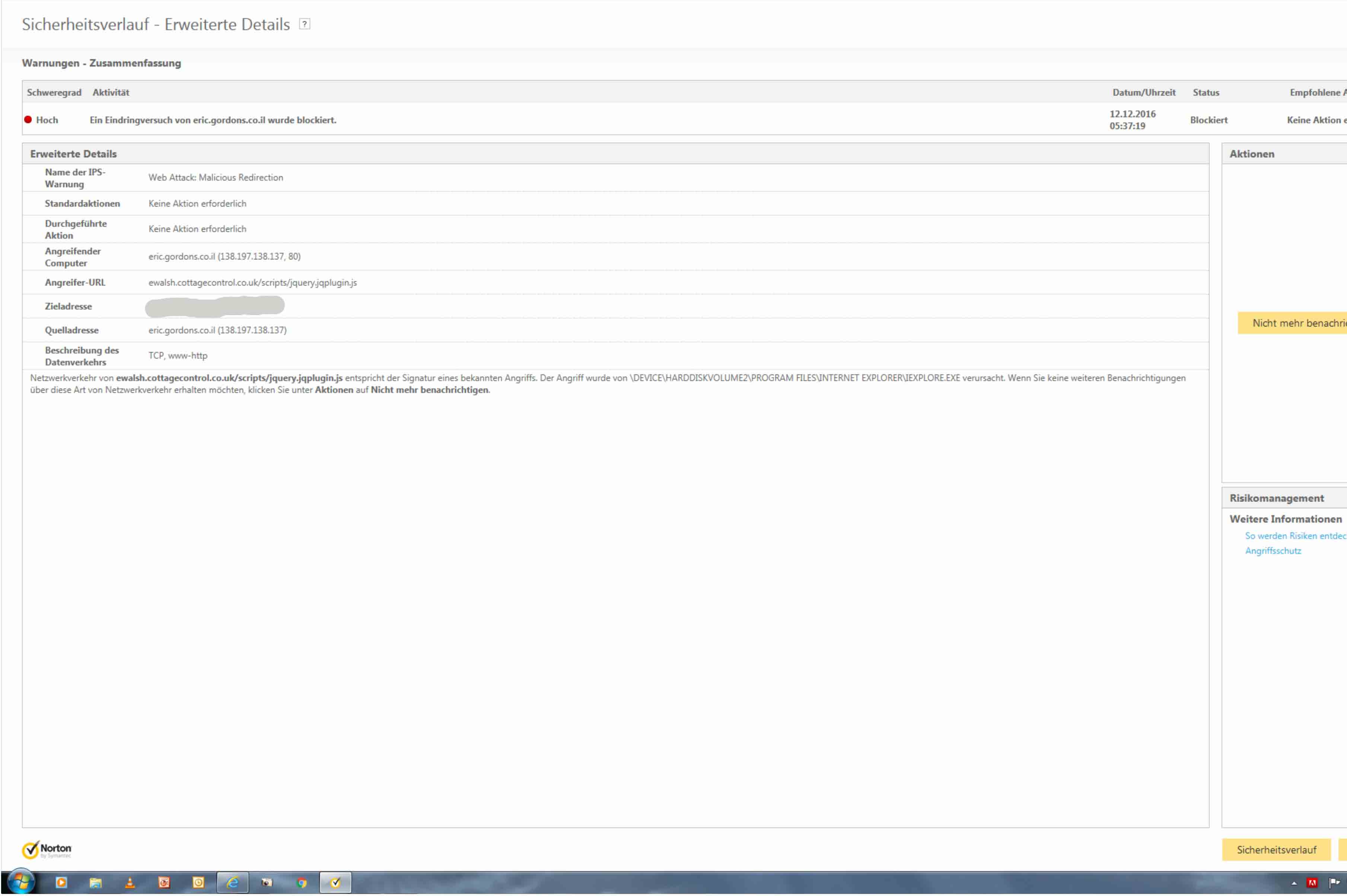 Problem hast du mit dein Browser ("normalen" Google) Microsoft Internet Explorer. Das bringt Norton auch (siehe Bild).