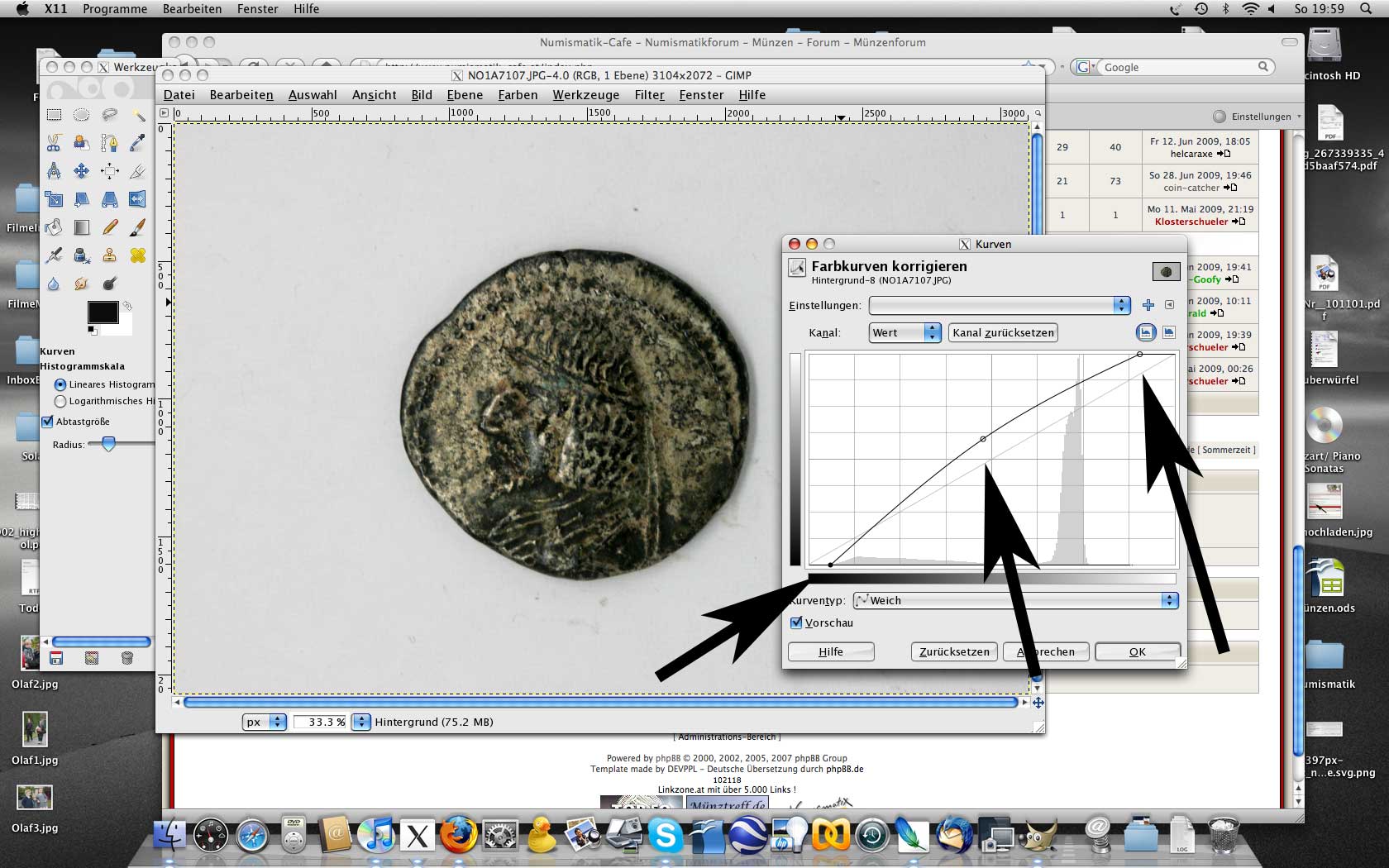 Dazu wird die Tonwertkurve angepasst (spielt einfach ein wenig herum, den Dreh hat man gleich raus, wie das Bild schön aussieht.