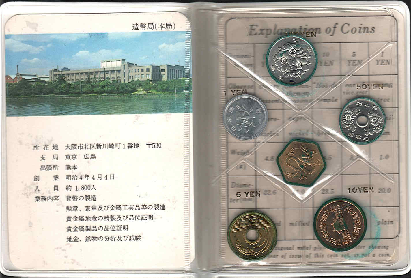 Normalerweise würde man, um die Münzen zu retten, diese aus der Folie nehmen und die Folie dann wegwerfen. In diesem Fall sind die Münzen aber vermutlich weniger wert und öfter vorhanden als der Münzsatz in der Hülle selbst. Er stellt ein kulturhistorisches Dokument für einen Irrweg in der Konservierung von Münzen dar und ist zugleich ein frühes Zeugniss für die beginnende Berücksichtigung von Sammlern bei den staatlichen Münzstätten. Die meisten Schriften des Satzes sind Englisch, es handelt sich also offensichtlich um ein für den außerjapanischen Markt hergestelltes Objekt.