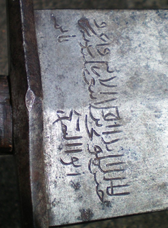 bin leider erst jetzt auf die PM und dieses interessante Stück aufmerksam geworden. Also vom Stil her ist das klar Mittelalter. Was mich jedoch wundert, ist der Umstand, dass die Klinge nicht verrostet ist. Sehr spezielle, nicht unbedingt alt anmutende arabische Naskhi-Schrift. Mal sehen, wie weit ich komme...
