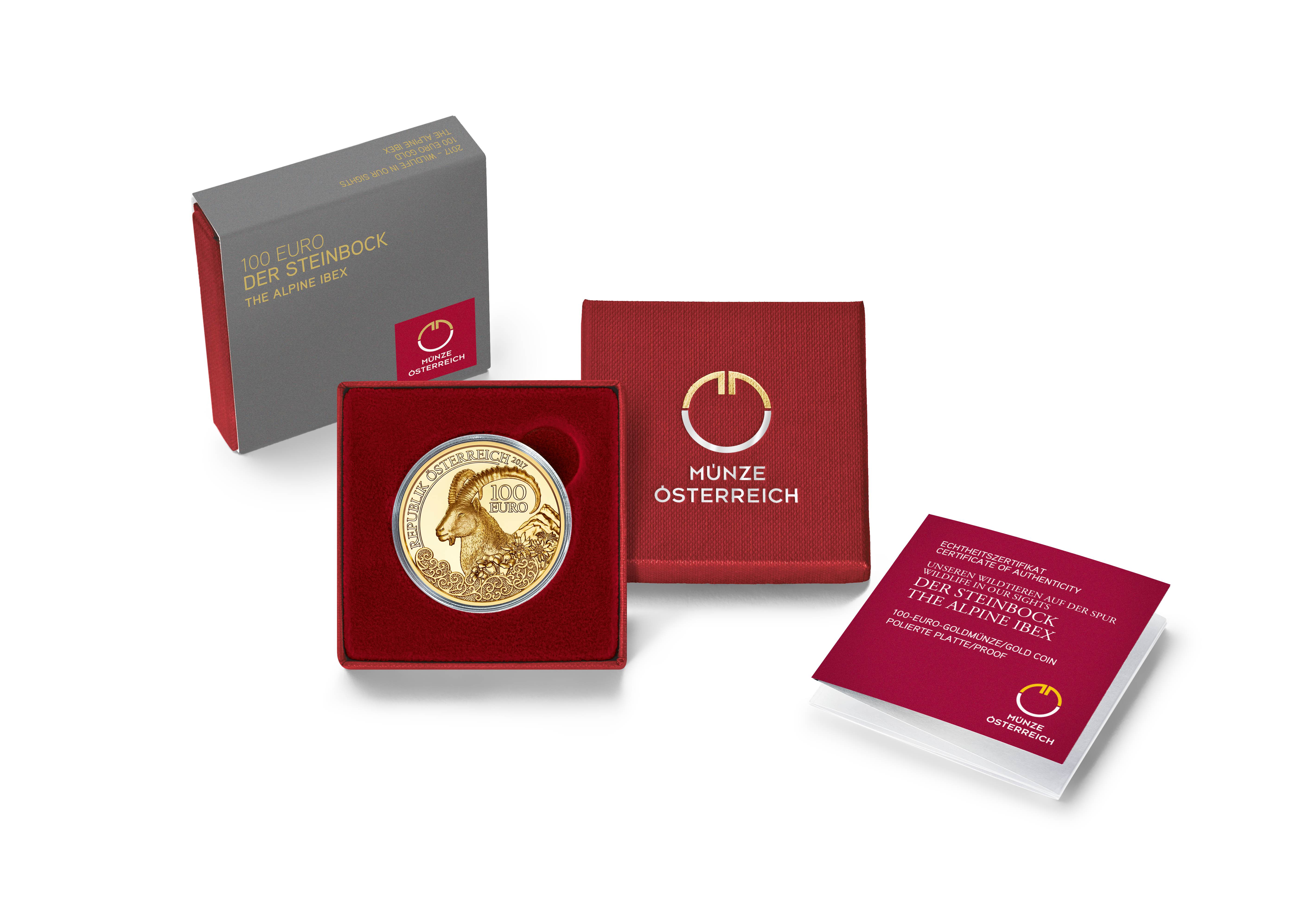 Ab Mittwoch, 18. Oktober 2017, ist die neue 100-Euro-Goldmünze „Der Steinbock“ aus der Serie „Unseren Wildtieren auf der Spur“ erhältlich…