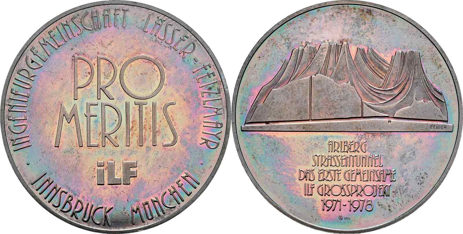 Revers: Nachbildung der Medaille von 1884 zur Eröffnung des Arlbergeisenbahntunnels