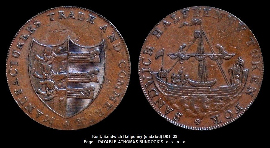 Den Penny gibt es offenbar in mindestens zwei Varianten, wobei mir in den Beschreibungen nur die Schlange in der Helmzier mit bzw. ohne Zunge aufgefallen ist. Die oben gezeigte Variante mit der fehlenden Zunge wird als "very rare" bezeichnet. Beide Varianten habe ich in das folgende Bild der silbernen Token eingefügt.