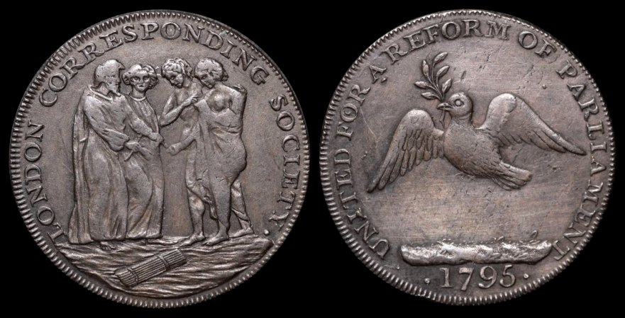 Ein Stichwort aus dem Beitrag konnte ich in meine Sammlung übertragen, die London Corresponding Society . Dazu kann ich einen passenden Token vorstellen.