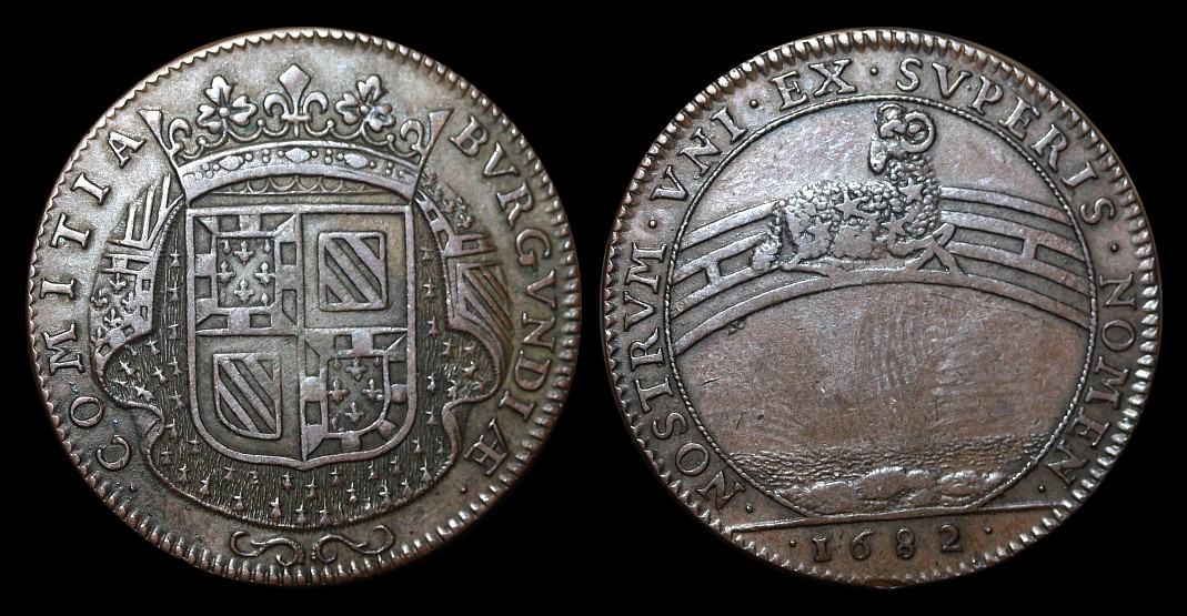Am 6. August 1682 wurde der erste Enkel von Ludwig XIV. - Louis, Herzog von Burgund und ab 1711 Dauphin von Frankreich - in Versailles geboren. Die Abgeordneten aus Burgund, die sich zu diesem Zeitpunkt in Paris befanden, gaben auf dieses freudige Ereignis umgehend die Herausgabe eines Jetons in Auftrag. Da der König als die Sonne galt, entschieden sie sich bei der Wahl des Motivs für das erste Sternbild des Tierkreises – den Aries oder Widder, der den Neubeginn des dynastischen Kreislaufs symbolisieren sollte. Die Legende war eine seltsame Schmeichelei: «Einer der Götter trägt meinen Namen». Mit dem Göttlichen gemeint war natürlich der Großvater, Louis XIV., der Sonnenkönig, verbunden mit der Namensgleichheit des Neugeborenen.