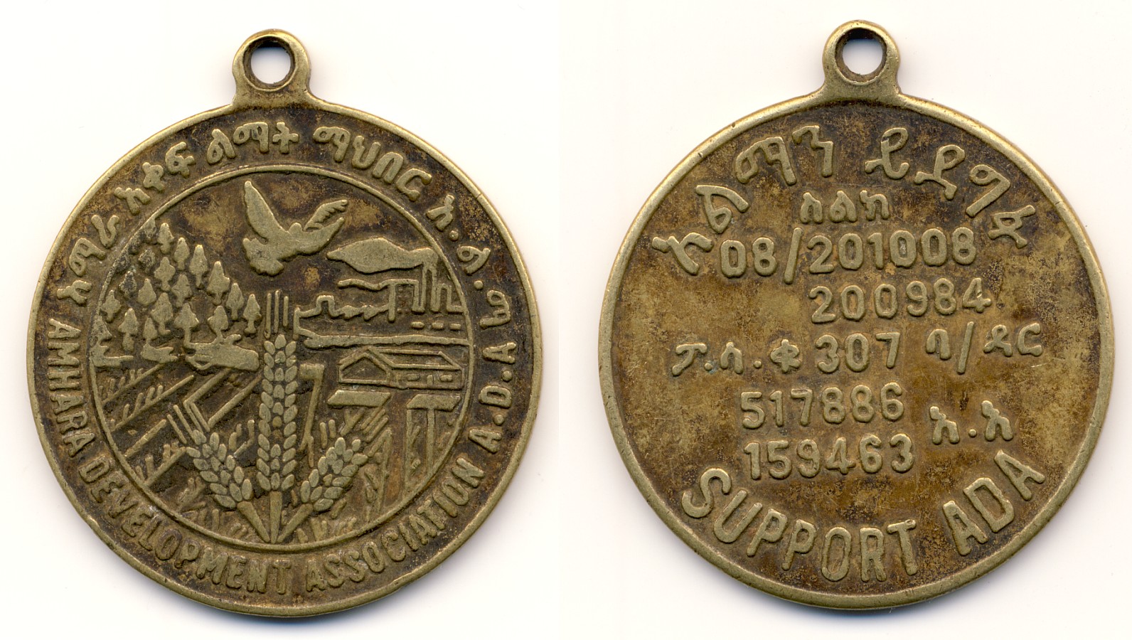 darf ich zwischendurch mal wieder eine Medaille aus Äthiopen vorstellen? Es geht diesmal um die "Amhara Development Association", einer NRO, die sich mit der Entwicklung des Nordwestens des Landes befasst. Beim vorgestellten Stück handelt es sich um eine Spenden-Medaille, die man bekam, nachdem man der Organisation etwas zukommen ließ. Sowas ist nicht unüblich. Ich habe in meiner Sammlung z.B. eine Medaille zur Orgelspende zum Dom in Paderborn von 1923. Auch in Afrika findet man sowas offenbar.