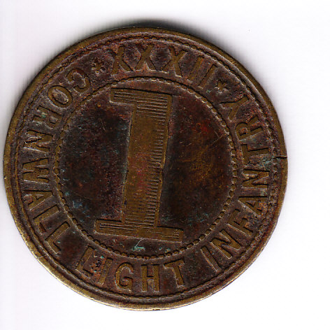 Vorderseite: Cornwall Light Infantry XXXII mit Nominale „1“