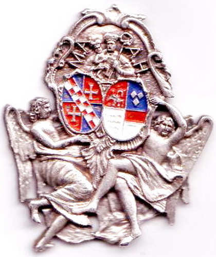 Es könnte auch ein Wallfahrtsabzeichen sein. Dann wären es keine Personenwappen, sondern die Wappen einer Kirche o.ä. Die Madonna mit Kind darüber und der Schrägbalken geschacht von rot und silber könnten auf eine Institution des Zisterzienserordens hindeuten. Grüße, KarlAntonMartini