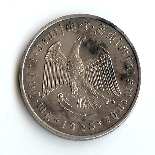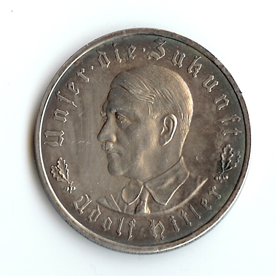 Kann mir jemand sagen, wo diese Medaille geprägt wurde, bzw. wo sie katalogisiert ist? Der Ausgabeanlaß dürfte die Ernennung Hitlers zum Reichskanzler am 30.1.1933 sein. Vs.: Brustbild Hitlers mit Umschrift "Unser die Zukunft / Adolf Hitler" Rs.: Reichsadler mit zerrissenen Ketten und Umschrift "1933 / Im Jahre deutscher Schicksalswende". Silber, Durchmesser 36 mm, ca. 21 g Mir erscheint sie authentisch, im Gegensatz zu den gelegentlich angebotenen "Goldmünzen", die nachkriegsgefertigter Edelmetallschrott sind.
